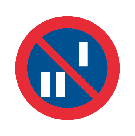 Parkeringsskylt som anger förbud mot att parkera fordon på den sida där märket är uppsatt.