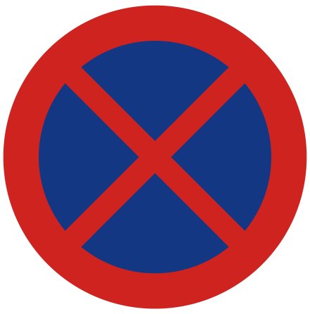 Parkeringsskylt som anger förbud mot att stanna eller parkera fordon på den sida där märket är uppsatt.
