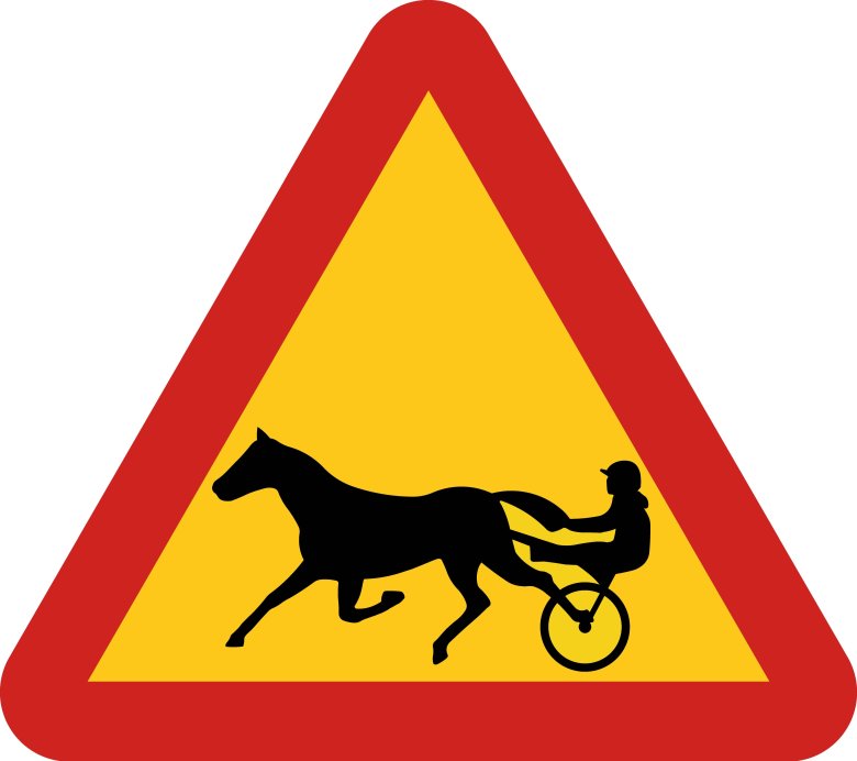 Hem » Varningsskyltar » Förspänt dragdjur trav - Varningsskylt